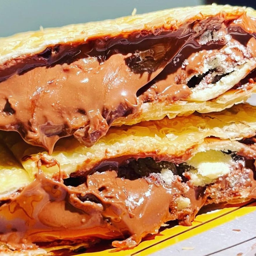 Recheado com Nutella Original e finalizado com leite Ninho. Uma explosão de sabor. Servido na massa leve e crocante. Aqui o recheio é levado a sério! São 22x12cm e aprox.300g de puro sabor. Perfeito para: Sobremesa Lanche da tarde Lanches Refeição Jantar