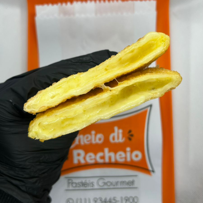 Palmito macio em cubos, combinado com muçarela derretida. Recheio suave, envolvido pela nossa massa leve e crocante. São 22x12 cm e 300g apx. De um sabor delicado e presença marcante. Cheio di Recheio. Aqui o recheio é levado a sério! Ideal para: Lanche da tarde Jantar Lanche