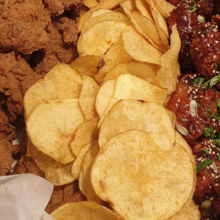 Este prato é uma combinação perfeita de meio frango frito, exalando um crocante irresistível, e meio frango frito apimentado, preparado no autêntico estilo coreano, proporcionando uma explosão de sabores picantes. Acompanhado de uma guarnição à sua escolha, que complementa de maneira harmoniosa o sabor do frango e um molho selecionado por você, que adiciona um toque final de personalidade a esta r