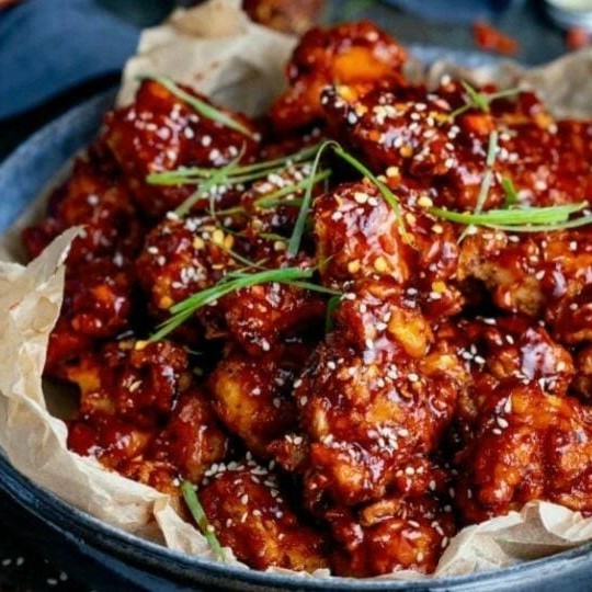 Exuberante Frango Frito Apimentado 'Korean Style G', preparado com um frango meticulosamente desossado e empanado para atingir a crocância perfeita. Banhado em um inigualável molho apimentado, exclusivo da casa, que traz a autêntica e vibrante culinária coreana ao seu prato. Esta maravilha gastronômica é harmoniosamente complementada por dois acompanhamentos cuidadosamente selecionados e, para fin