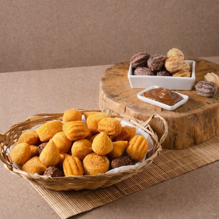 Saborosos e inigualáveis, os nossos 50 Chicosalgados são fritos na hora, garantindo um sabor único e uma textura muito sequinha, que se desmancha na boca. Além disso acompanha 10 deliciosos mini churros para adoçar o seu Dia, perfeitos para compartilhar ou se deliciar sozinho! Experimente!