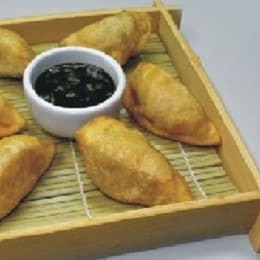 Massa leve e crocante, recheada com queijo tipo mussarela. Acompanha molho agridoce.