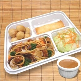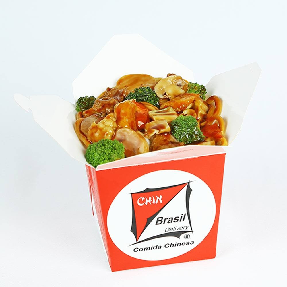 Frango xadrez, yakimeshi, frango empanado e salada (Obs: Sem alteração dos itens ou troca)