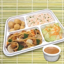 Carne com legumes,Yakimeshi,frango empanado e salada (Obs: Sem alteração dos itens ou troca)