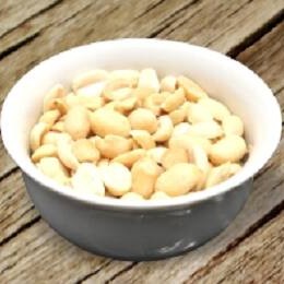 Cubos de peito de frango com pimentão, cebola e amendoim ao molho de soja.