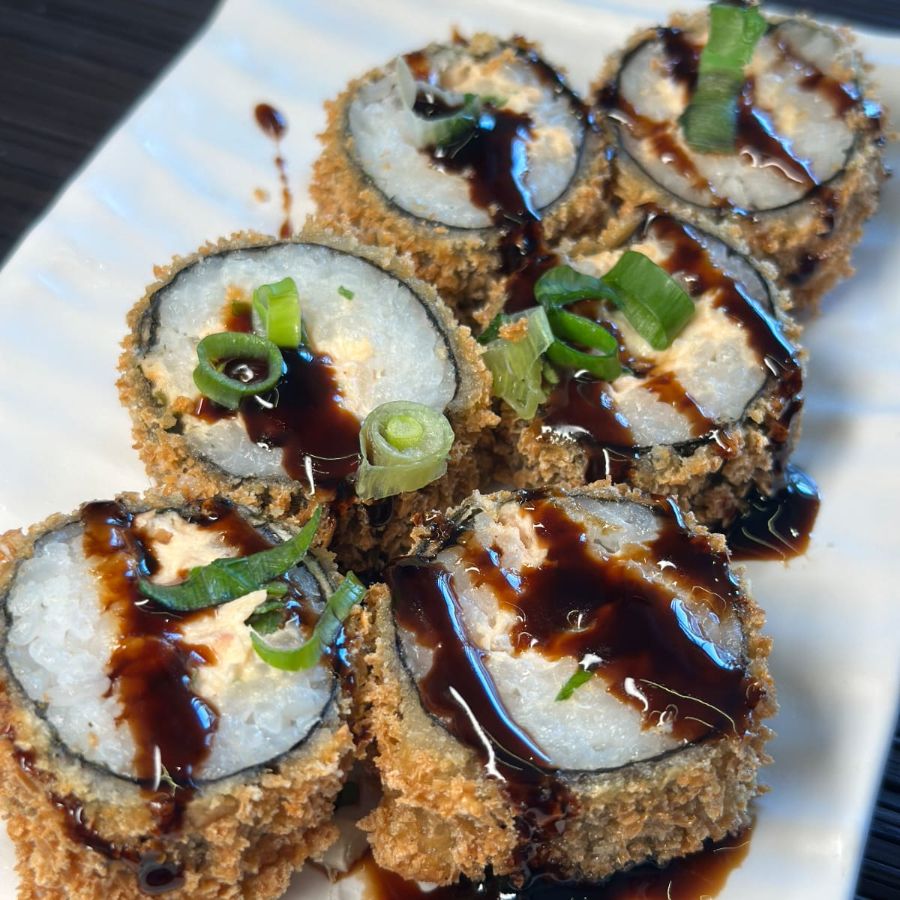 Hot Holl Salmão Grelhado - Enrolado empanado com salmão grelhado e desfiado misturado com creme cheese e molho tarê.