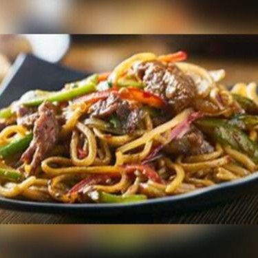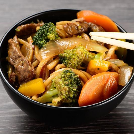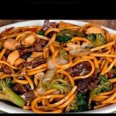 Frango, carne,pimentao,cebola,repolho cenoura,brocolis e macarrão oriental.