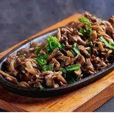 carne fatiada, cebola temperado ao molho de soja
