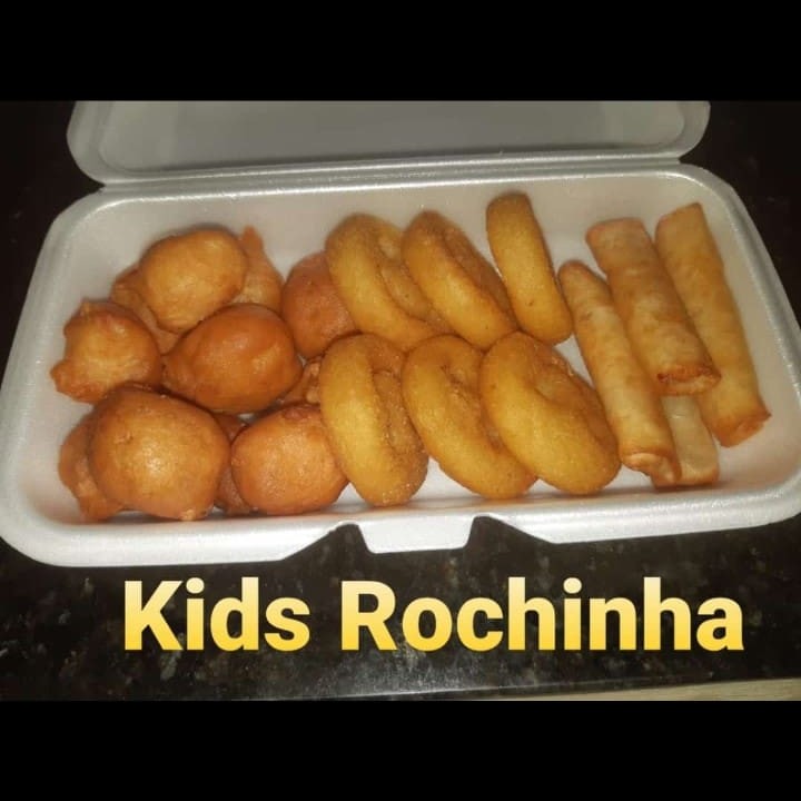 Prato infantil (10 bolinhos de frango empanado 5 batatas smile 4 mini rolinho queijo e acompanha 1 mini refrigerante