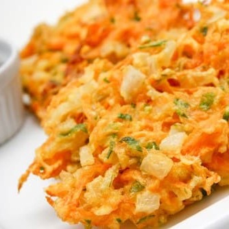 Pedaços de peixe empanados em farinha crocante oriental (acompanha molho agridoce ou oriental).