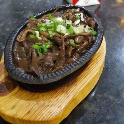 Massa fina recheada com carne bovina, temperada com gengibre.