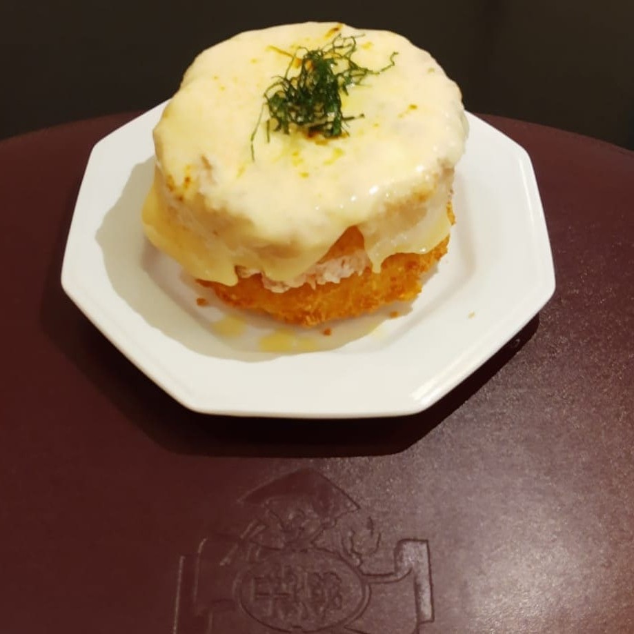100g de recheio de salmão grelhado com queijo,creme cheese ,cebolinha e couve crispy.