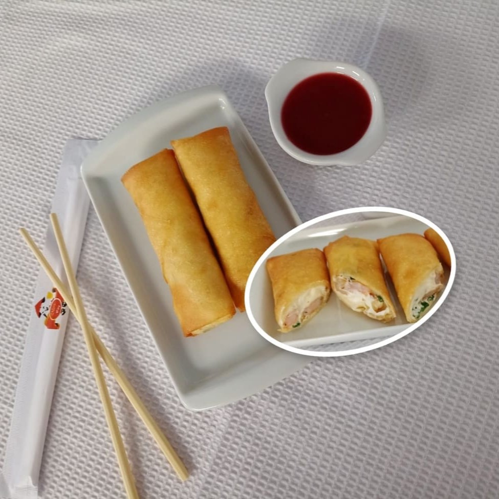 Massa fina crocante recheada com camarão, requeijão cremoso e cebolinha picada (acompanha molho agridoce)