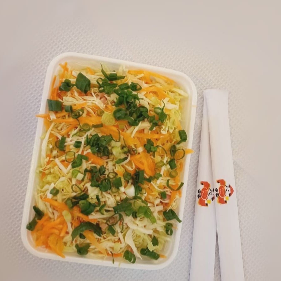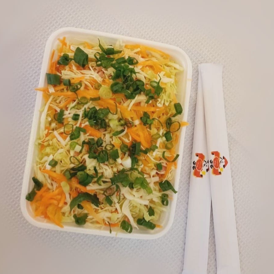 Repolho, cenoura, muçarela, presunto e cebolinha