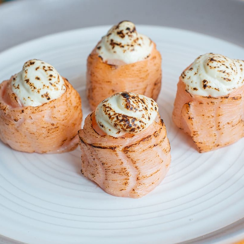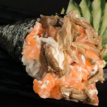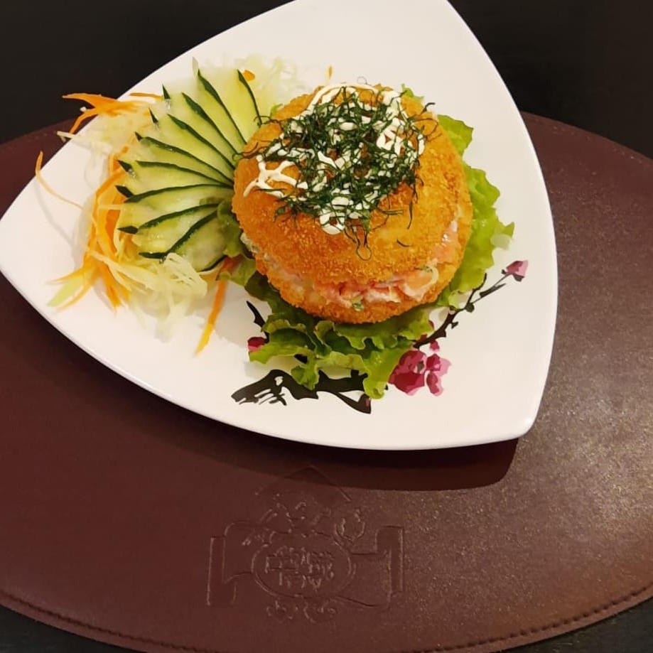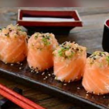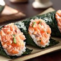 100g de recheio de salmão cru com cream cheese,cebolinha e couver crispy.