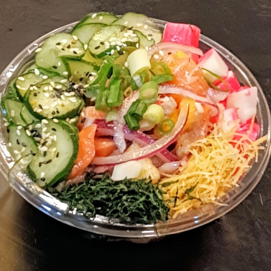 Vem acompanhado de Salmão cru, batata doce Crispy,couve crispy,kani, gergilin+ uma unidade de sachê de molho shoyu