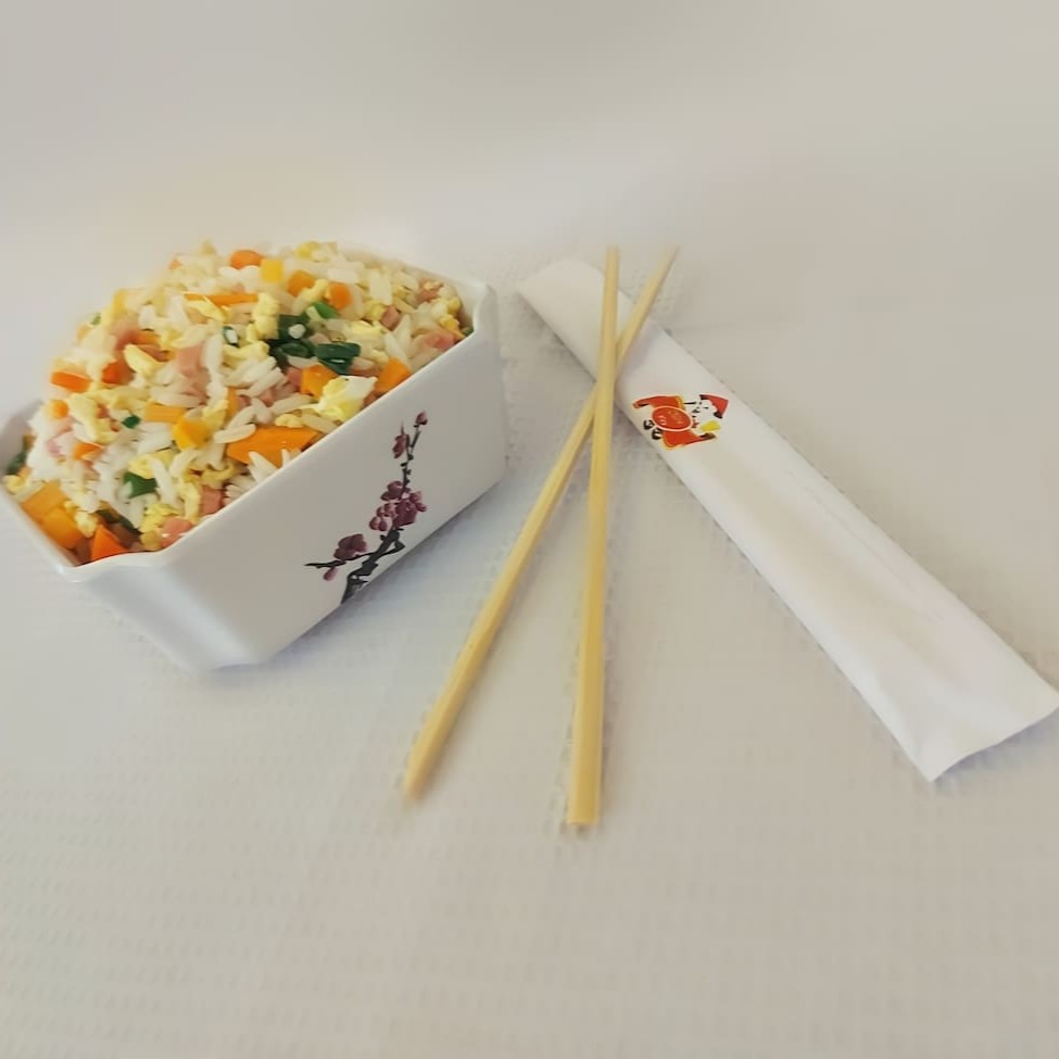 Macarrão de arroz, flocos de ovos, camarão, broto de feijão,pimentão, cenoura, champignon e cebola