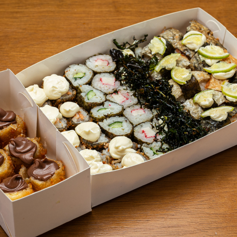 Se você é a pessoa que não come peixe cru (ainda) esse combo foi feito especialmente para você. E ainda vem com sushi doce para adoçar a vida. Tem coisa melhor? 10 hossomaki (5 kani e 5 pepino) 10 hot roll 05 niguiri de 05 niguiri de skin c/ limão 06 uramaki skin c/ couve crispy 04 hot romeu e julieta (sushi doce) Leia aqui também hein: Como é promoção não pode trocar, tá? Esse pedido acompanh