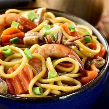 Macarrão frito com saborossos camarões,pedaços de frango e fatias de carne,legumes selecionados e temperados ao molho de soja.
