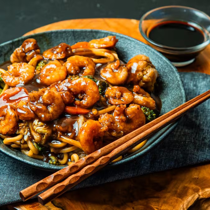 Combinação especial do nosso macarrão com camarão, legumes frescos e champgnos, ao molho especial Chinês. Temos opções que servem até 4 pessoas.