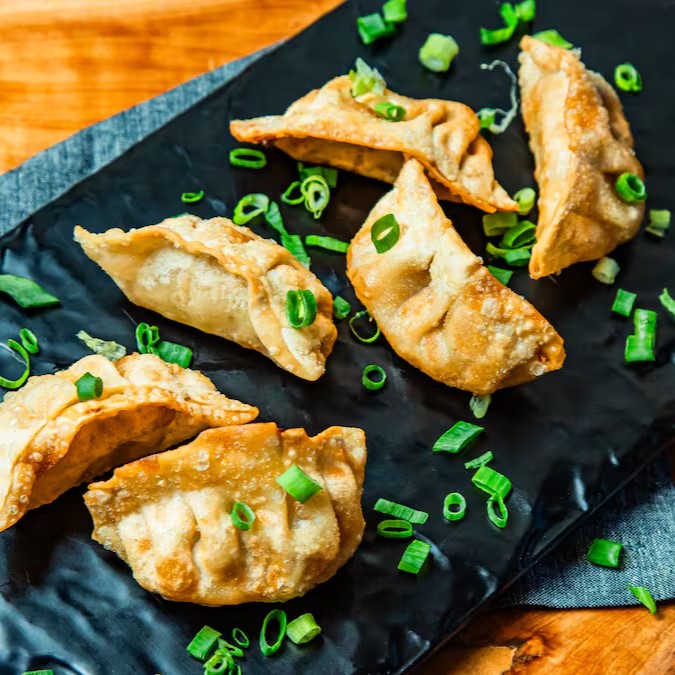 Pastéis orientais fritos recheados com carne bovina. Acompanha molho tradicional.