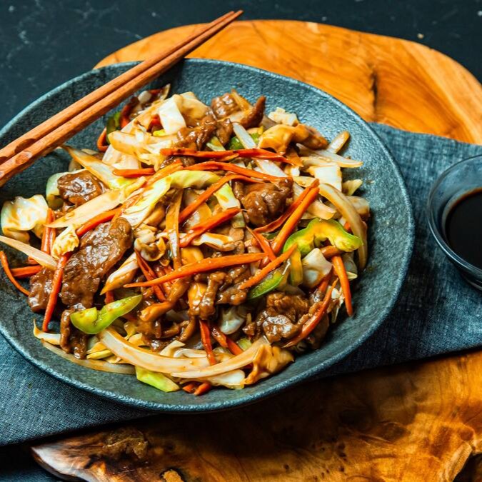 Combinação perfeita de carne macia com pimentões, cebola e cogumelos ao molho especial Chinês. Temos opções que servem até 4 pessoas.