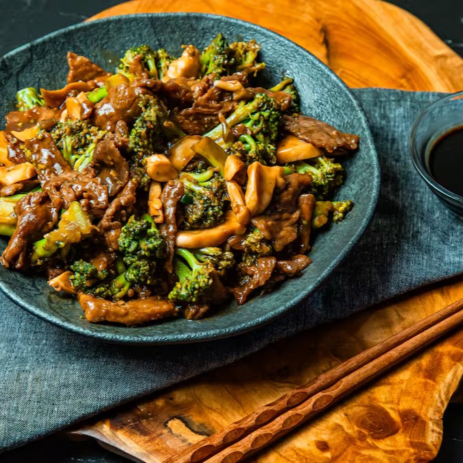 Saborosas fatias de carne macia com brócolis e cogumelos ao molho especial Chinês. Temos opções que servem até 4 pessoas.