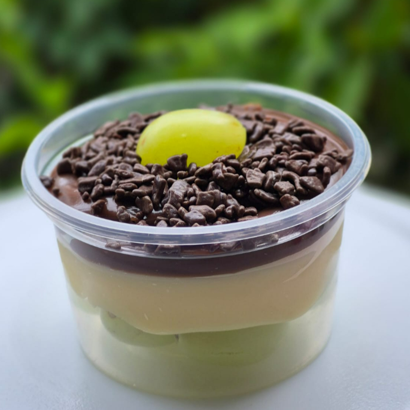 Um delicioso brownie de chocolate com brigadeiro de ninho, uvas verdes sem sementes, 2 camadas de brigadeiro tradicional e mousse de ninho.#copodafelicidade