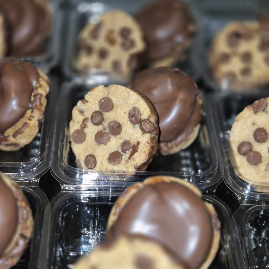 2 deliciosos cookies recheados com Brigadeiro e Nutella, cobertos com chocolate.