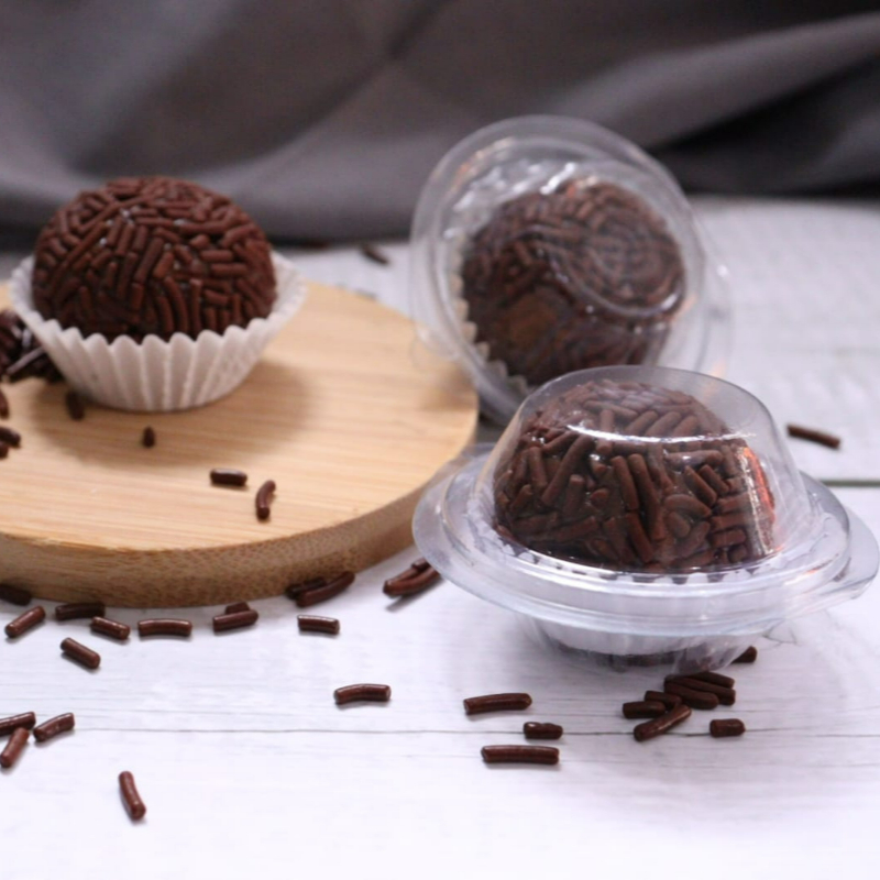 2 camadas de um delicioso brigadeiro com uma camada de bolo, finalizados com granulado.