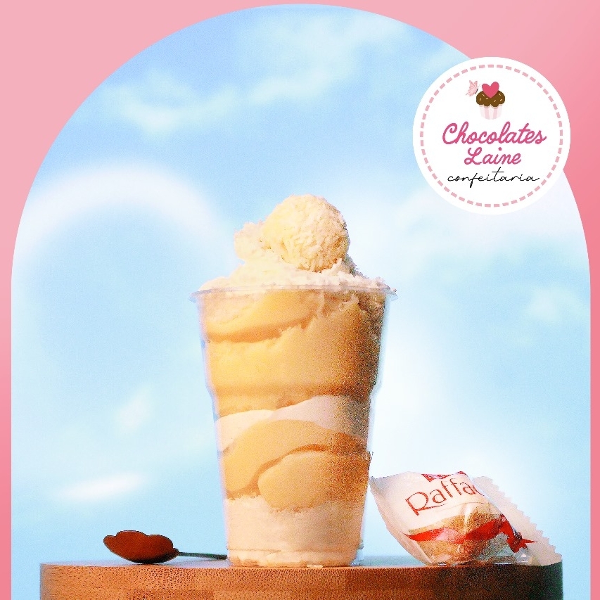 Feito com creme de coco, mousse de coco suave, pedaços do bombom Raffaello e finalizado com uma generosa camada de coco ralado — uma combinação cremosa e crocante que derrete na boca. Copo 220ml.