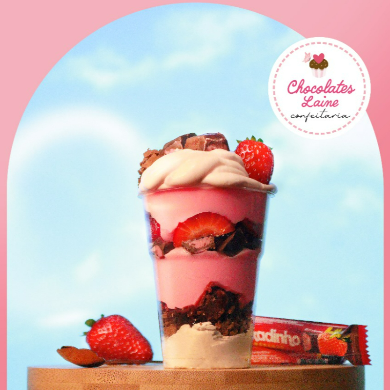 Delícia de Morango com Brownie e Stikadinho Uma explosão de sabores em cada colher! Comece com um cremoso creme de morango, coberto por pedaços macios de brownie e morangos frescos selecionados. Para deixar tudo ainda mais irresistível, pedaços crocantes de Stikadinho se misturam à textura, finalizando com uma mousse de morango leve e aerada. Uma sobremesa perfeita para os apaixonados por morango.
