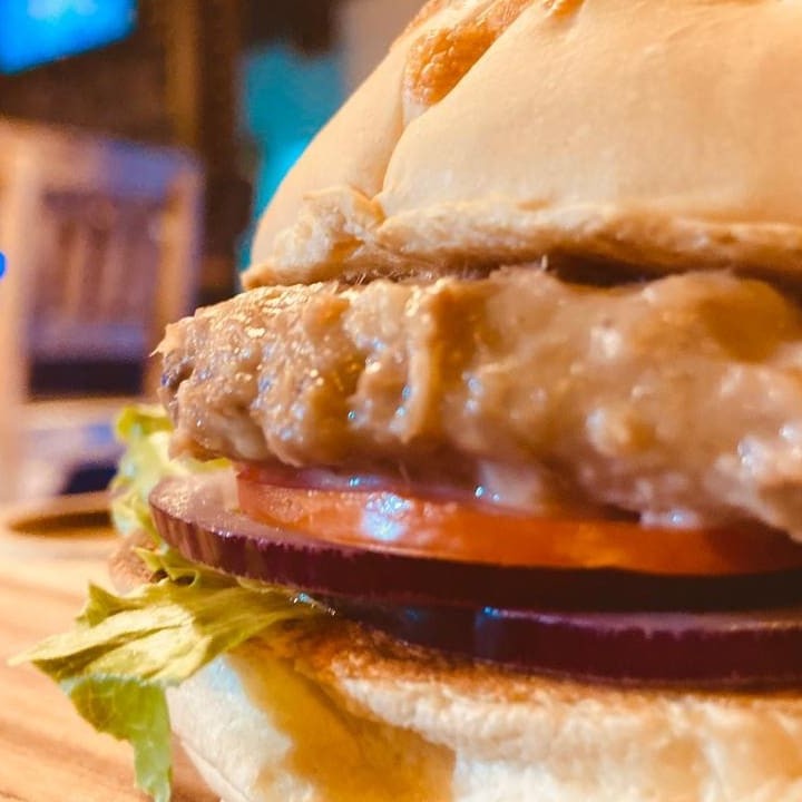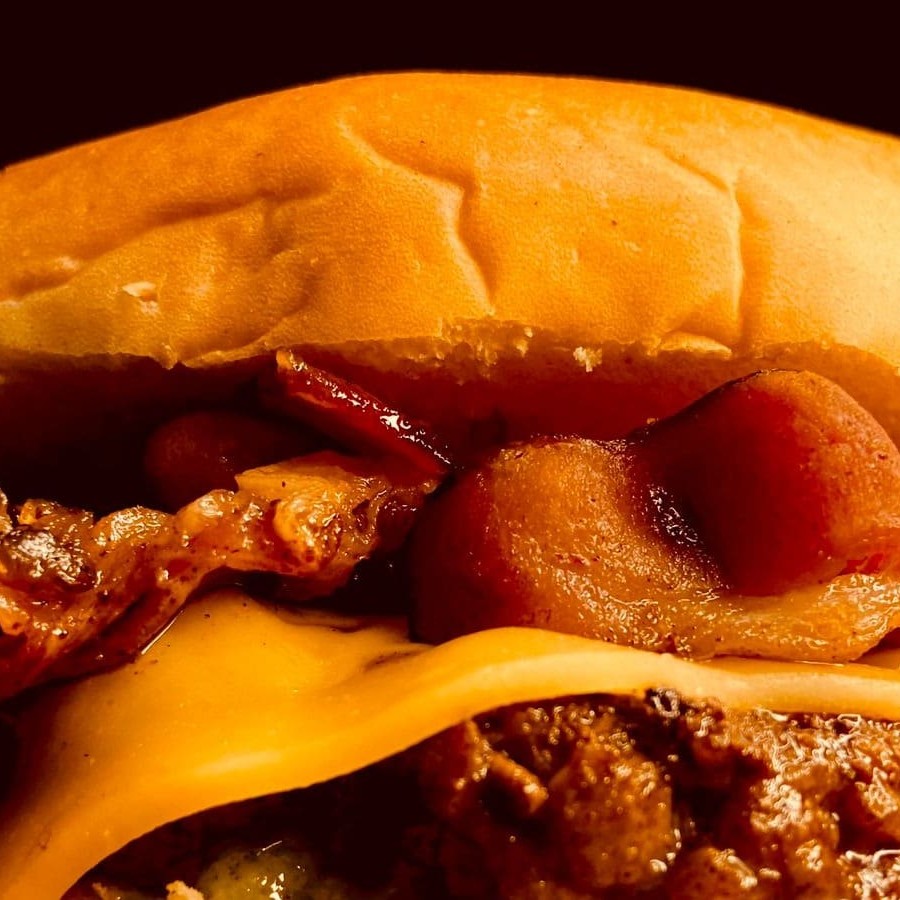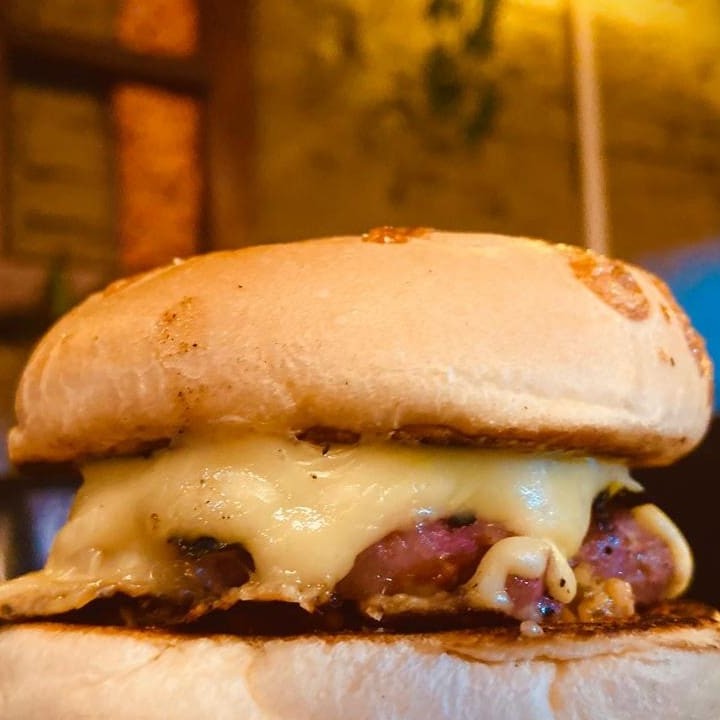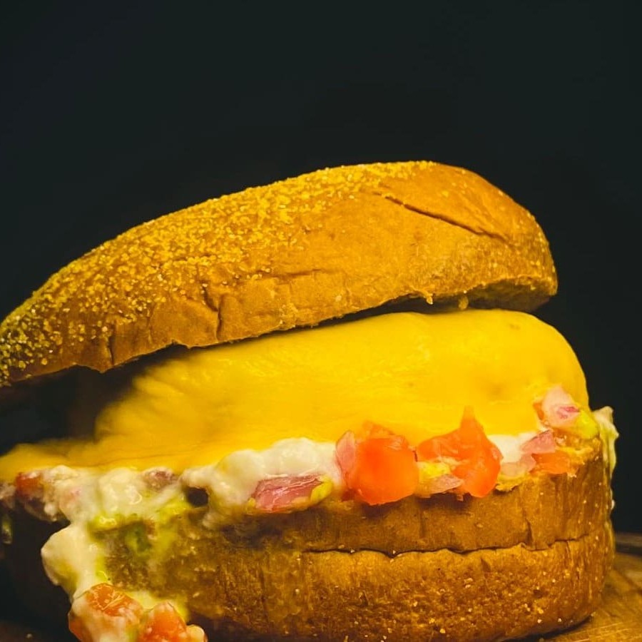 150g de Burguer artesanal de kafta com curry, pimenta, vinagrete, iorgute e queijo no pão de brioche.
