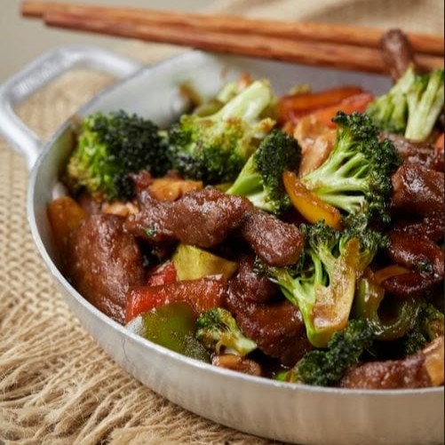 Essa opção é a mais adorada pelos nossos clientes na categoria de carnes. Suculentas tiras de carne bovina, uhuuuumm, já deu agua na boca, com brócolis selecionados e fresquinhos, pimentões vermelho, verde e amarelo e toque final com champignon.