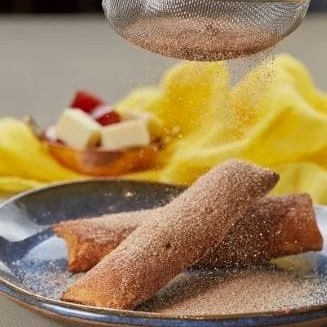 Rolinho de romeu e julieta. Recheado com queijo, tipo mussarela e pedacinhos de goiabada. Tudo preparado no chun-li. Finalizado no processo de povilhar açucar e canela em pó. Fica incrível.