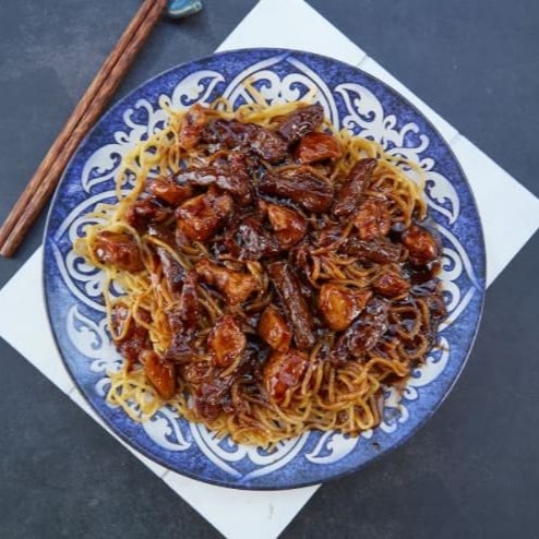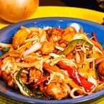 Delicioso Macarrão Chun-Li, Frito, tiras de Carne Bovina e cubos de Filé de Frango, Salteadas no Molho Chun-Li a base de Shoyu.