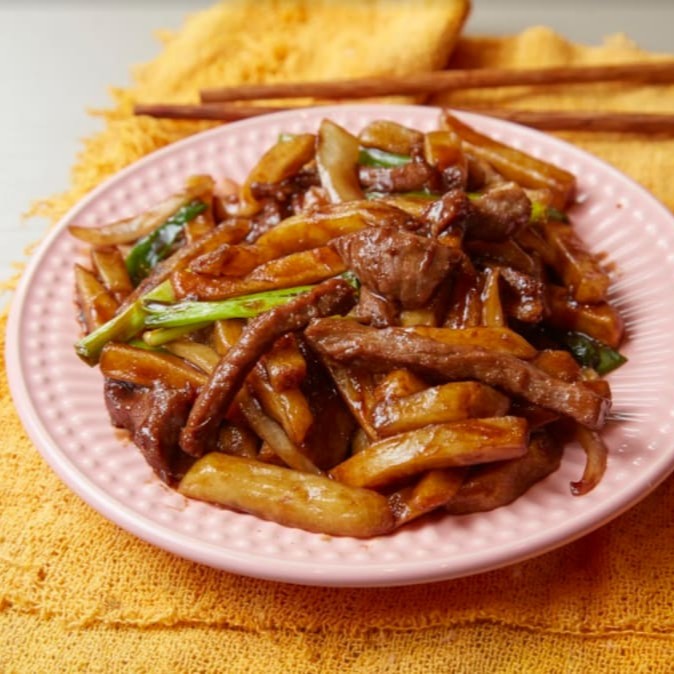 Uma opção com sabores já conhecidos e incrível. Suculentas Tiras de Carne Bovina, com Batata Frita, Tiras de Cebola e Cebolinha Salteados no Wok com Molho Especial Chun-Li. A porção executiva acompanha o Yakimeshi