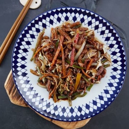 Conhecidos entre os chunlilovers, saborosas tiras de carne bovina, com legumes selecionados: tiras fininhas de repolho, cenoura, cebola, pimentões vermelho, verde e amarelo, além do saboroso moyashi (broto de feijão).