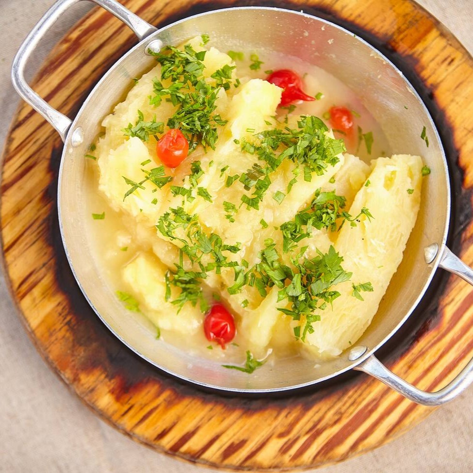 Nossa mandioca é ideal para acompanhar seu churrasco, deliciosa e cozida na manteiga!