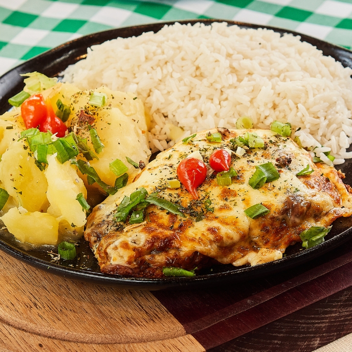 Parmegiana de Filé Mignon, banhado em molho ao sugo da casa. Com acompanhamentos incríveis para você escolher!