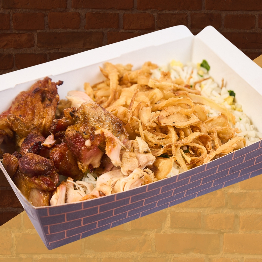 Arroz, preparado com bacon, cebola, ovo, salsinha e finalizado com cebola crispy. Em 3 tamanhos para você escolher.