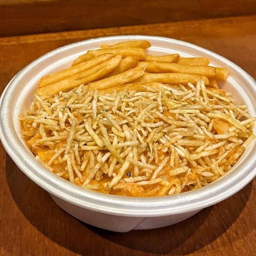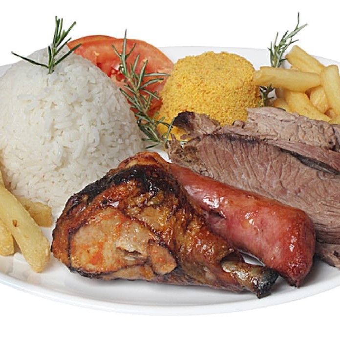 Acompanha Espaguete, arroz, feijão, frango e linguiça.
