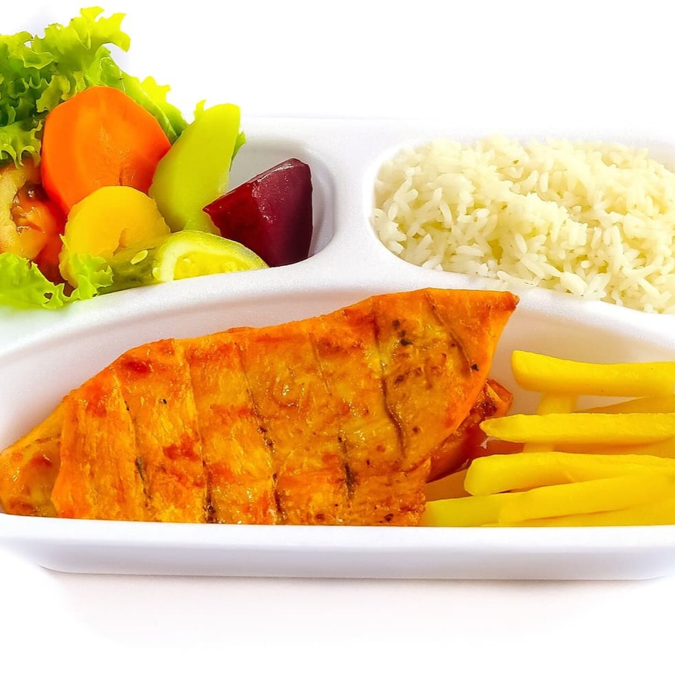 Apresentamos o nosso Executivo Filé de Frango Grelhado, um prato da categoria 'Pratos Executivos'. Este prato é composto por um suculento filé de frango, perfeitamente grelhado para realçar o seu sabor natural. Acompanha uma porção generosa de arroz fresco e soltinho, feijão caseiro com tempero inigualável e batatas fritas crocantes e douradas. Para completar a refeição, servimos uma refrescante salada, trazendo um toque de leveza e frescor ao prato. Ideal para quem busca uma refeição completa e saborosa, sem abrir mão da qualidade.