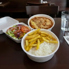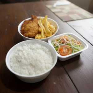 Arroz, Fritas , 2 Filé de Frango grandes e Salada ( Alface, Tomate e Cebola)