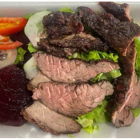Nossa fraldinha grelhada é macia e cheia de sabor, acompanhada de uma salada fresca e colorida, perfeita para uma refeição leve e nutritiva. acompanha: alface, tomate, beterraba, pepino e cenoura.