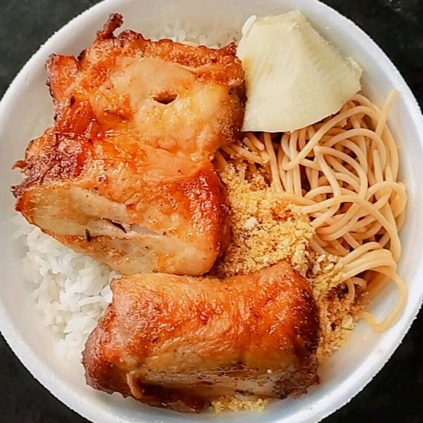 Acompanha arroz, feijão, macarrão, farofa e uma deliciosa tilápia frita.
