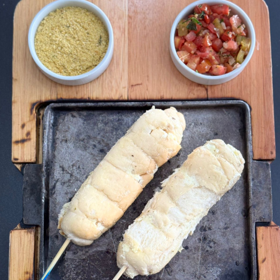 Pão Franses Vinagrete ,1 espeto da sua escolha a companha 5 molhos já no lanche