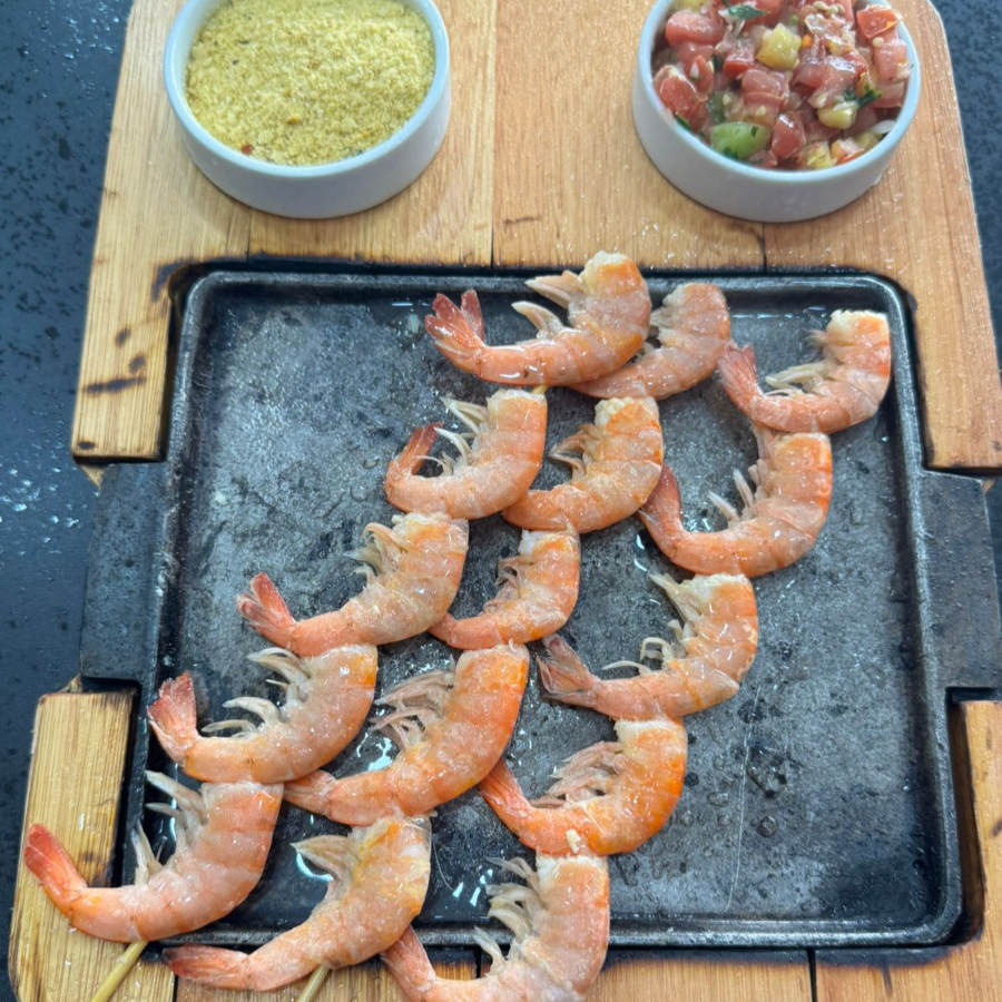 Neste prato Trazemos o queridinho dos nossos clientes o famoso cuscuz do churrasco do ju feita na qualiadade nordestina com aquele toque da carne seca junto com cabresa e bacon que da um sabor unico do churrasco do ju mais aquele vinagrete fresco e não podia faltar aquela batata em conserva mais 1 espeto de salmão