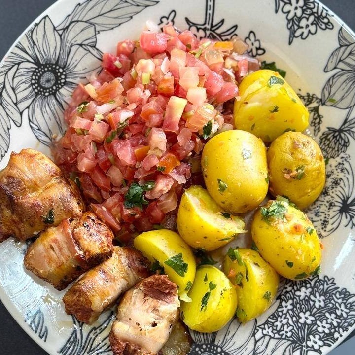 Pratinho 1 o Tradicional da casa 1 Espeto Da Sua Escolha Vinagrete E Batata Em Conserva