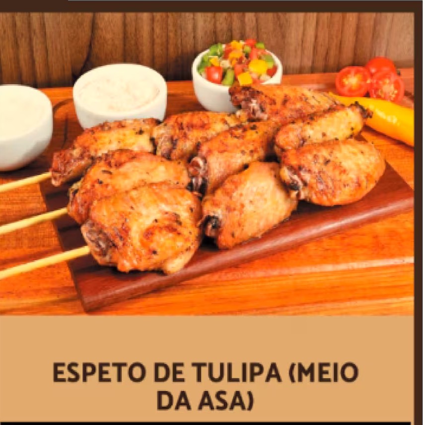 carne, carne com bacon, costela, misto, frango, frango com bacon, tulipa, panceta, queijo mussarela defumada, queijo coalho, linguica, linguica apimentada , salsichao com provolone, medalhao de carne, medalhao de frango entre outros...